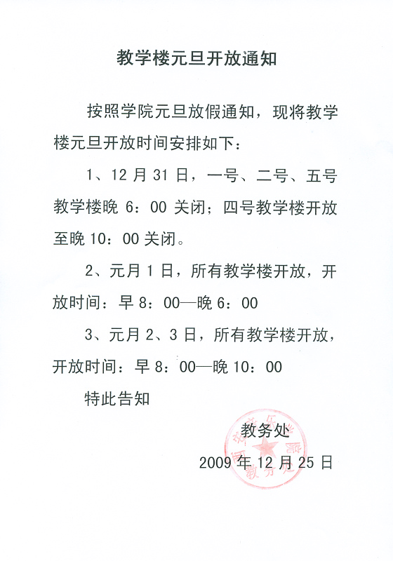 教学楼元旦开放通知