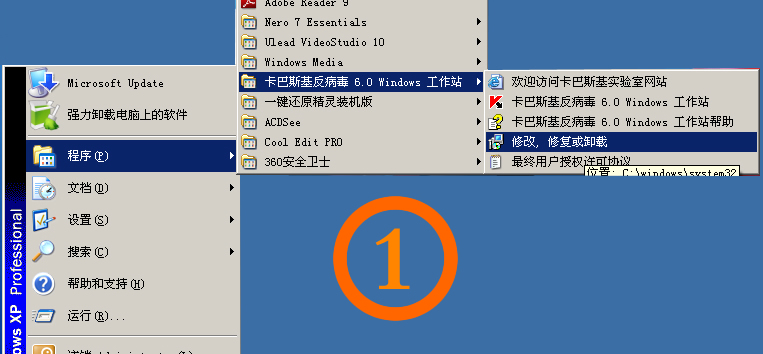 【注意】若安装其他品牌杀毒软件,请先卸载原卡巴斯基软件,卸载流程如下: