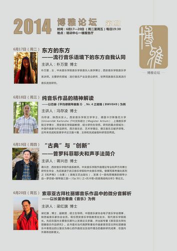 2014年6月17日至20日,每日19:30,在培训中心一楼报告厅举办“2014年博雅论坛第一期”,请广大师生届时莅临。