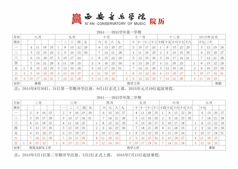 西安音乐学院2014—2015院历