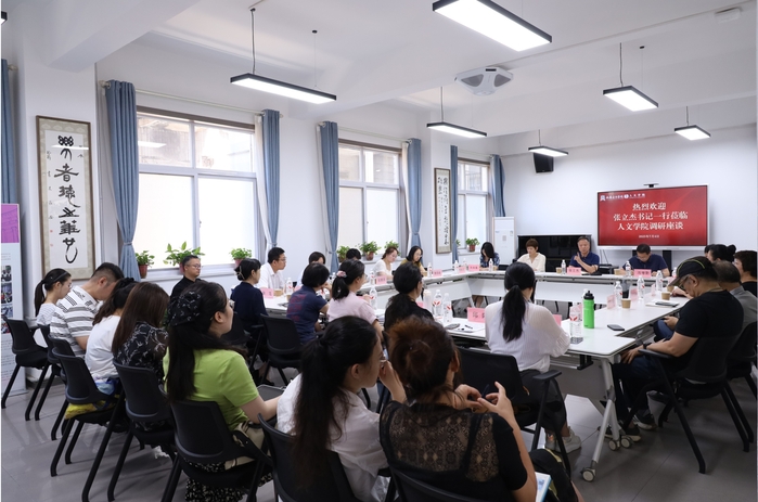 为深入贯彻中央八项规定精神学习教育,持续推进作风建设,有效解决学校发展中的实际问题,7月4日上午,党委书记张立杰到人文学院调研指导工作,并与教师代表座谈交流。组织部、宣传部、教务处、发展规划处等部门负责人,以及人文学院党政联席会成员、各专业方向教师代表参加了此次座谈会。