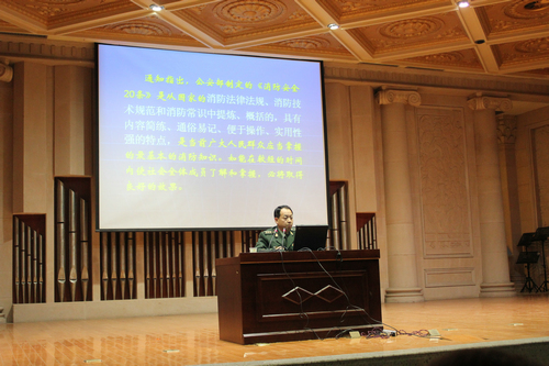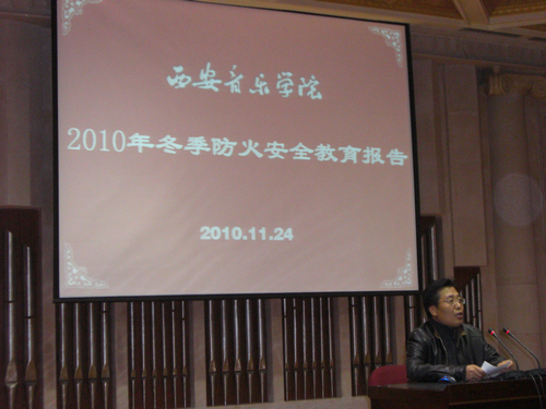 2010年11月24日下午,保卫处和学工部共同组织我院2010级全体新生进行消防安全知识讲座,主会场设在学术厅,分会场设在五号教学楼教室。讲座由学工部部长强陆平主持,市消防支队防火处杨增社处长主讲。杨处长用了大量的实例列举了一系列违反消防法的行为,讲解了防火、灭火、遇险逃生的相关知识,还用了大量鲜活的图片和案例说明了火灾的危害。