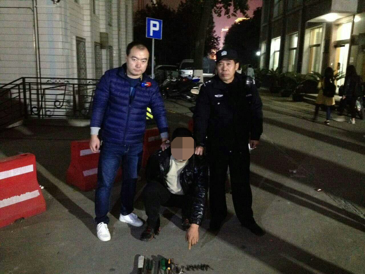 2016年11月14日19时40分,我处在例行巡逻时发现两名来院伺机盗窃人员,在带班干部果断指挥下,校卫队员面临危险毫不退缩,一举将来院多次盗窃师生员工电动车嫌疑人抓获,并移交辖区便衣警察大队,有力打击了犯罪分子嚣张气焰。