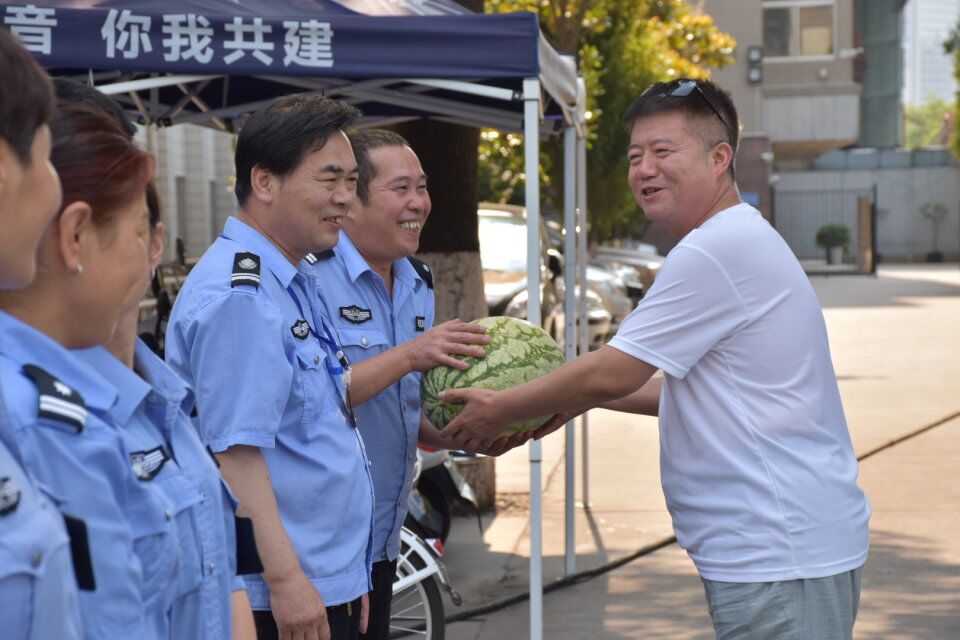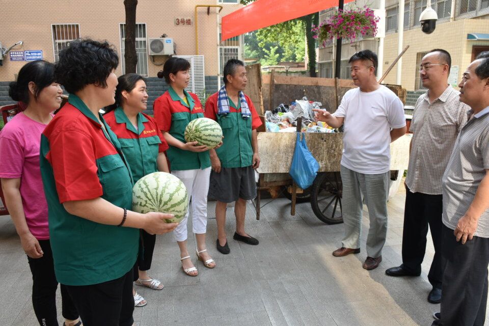 2017年7月14日下午4时,院长助理唐灵宝带领后勤处、保卫处两部门相关负责人,为炎炎夏日坚守一线的校卫和绿化工人送上了防暑降温的西瓜和学校对大家的问候,叮嘱大家保重身体,防止中暑,让一线的员工深切的感受到了学校的关怀。