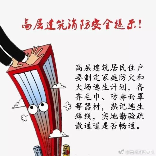 随着社会的发展迅猛,各个城市中高层及超高层建筑越来越多,那么问题来了,如果你居住或工作在高层建筑中,一旦发生火灾,该怎么办?如何预防高层建筑火灾的发生?小编搜集了一些高层建筑消防的安全提示,请认真做到以下几点: