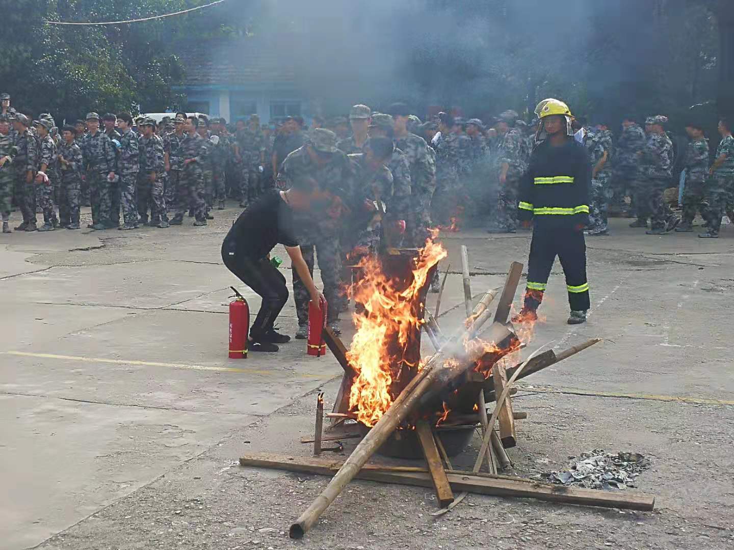 安全逃生和消防演练是大学生入学安全教育的重要内容。9月21日下午14:40许,西安音乐学院保卫处根据校党委年度安全工作计划和迎国庆各级领导的要求,在蓝田国防教育新生军训基地对2019级本科生组织了“安全逃生和灭火实操演练”。演练由新训基地郑亮团长主持,保卫处高学飞副处长进行了安全演练教育动员,保卫处负责消防安全工作的尹西平等10余人,牺牲休息时间,加班加点对演练器材进行了保障布置,并对实操现场安全进行组织。演练除个别病号外,所有新生1000多人参加了演练。