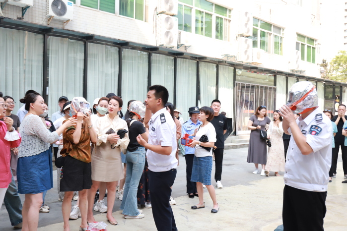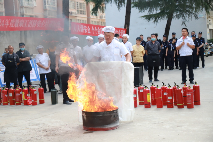 随后,实战演练环节将活动推向高潮。在教官的指导下,参训人员亲身体验了灭火器、灭火毯的正确使用方法,以及防烟面具的佩戴技巧。通过模拟火场环境,大家不仅感受到了火灾现场的紧迫与危险,更在实战中掌握了有效的应急处置技能,实现了“会使用灭火器、会急救、会疏散逃生”的既定目标。此次演练不仅增强了教职工的消防安全意识,还极大地提升了他们的实际操作能力和团队协作能力。