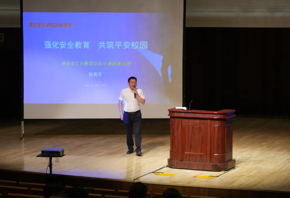 9月8日下午,保卫处联合小寨派出所警务室举办校园安全主题活动。小寨派出所驻校警官徐勇军凭借丰富经验,以鲜活案例讲解防范电信诈骗等校园安全要点,有效提升学生风险防范意识;保卫处王启立老师以“全民消防 生命至上”为主题,含高校火灾案例警示、疏散逃生方法、灭火器使用教学,强调宿舍禁用大功率电器、离宿断电锁门、及时拔插头、不吸烟等防火要点。活动中,保卫处处长高学飞深情献唱《平安是福》将气氛推向高潮,并从日常管理、应急处置、隐患排查等维度深入阐述,号召师生共建平安校园。