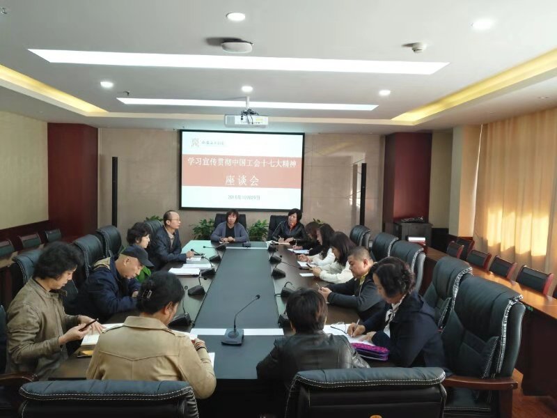 中国工会第十七次全国代表大会10月22日上午在人民大会堂开幕。习近平、李克强、栗战书、汪洋、赵乐际、韩正等党和国家领导人到会祝贺,王沪宁代表党中央致词。我院副院长、工会主席安金玉作为本届代表中仅有的两名陕西高校代表出席会议,这是我们西安音乐学院的骄傲。为及时学习和宣传好大会精神,我们在周日就做了安排布署,周一上午,立即组织召开了学习宣传贯彻中国工会十七大精神座谈会,校工会委员会委员、各分会主席、教师代表参加会议。座谈会由校工会常务副主席职秀芝主持。