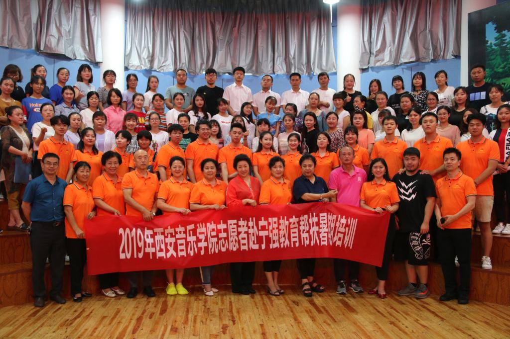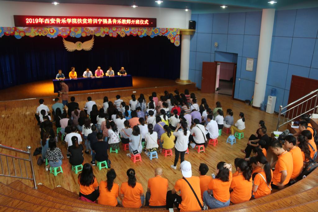 7月11日,西安音乐学院2019年扶贫培训宁强县音乐教师开班仪式在宁强县青少年活动中心举行。西安音乐学院工会常务副主席、扶贫办主任职秀芝,工会副主席夏荣娣,宁强县教体局党组书记、局长付祥武,县政府教育督导室主任、教体局副局长杨春明,县教育工会主席郑树东,县教研室主任许涛,西安音乐学院前来担任培训讲课的师生志愿者以及参训的全体教师共计120余人参加了培训开班仪式。