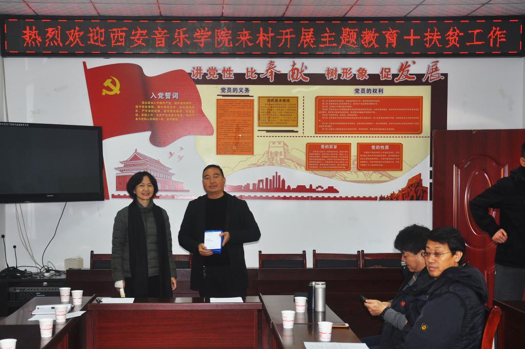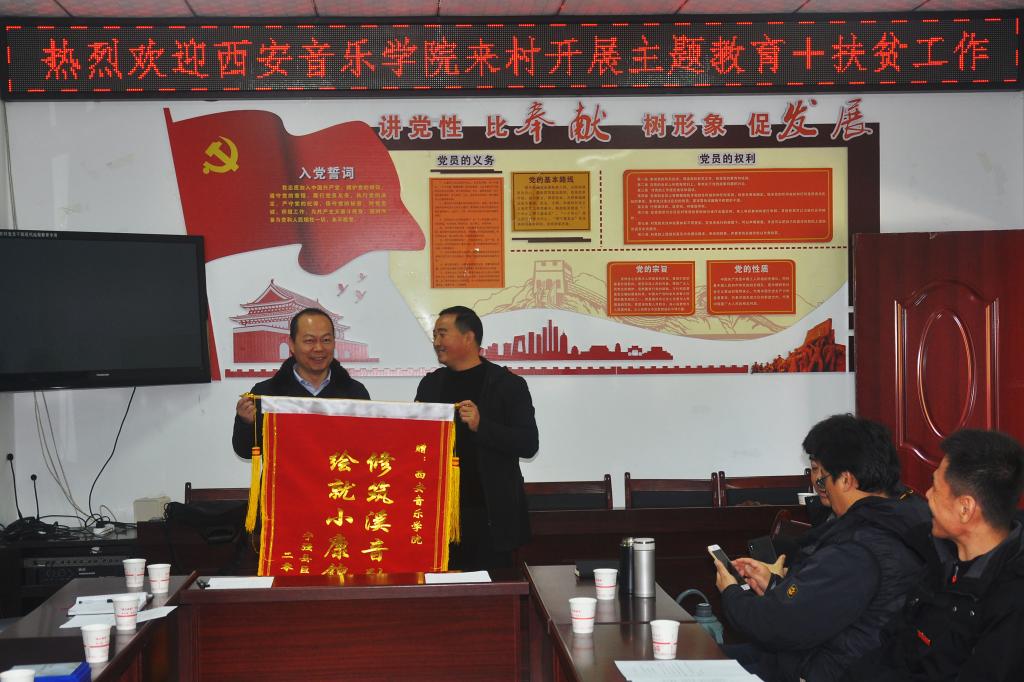 初冬的秦巴深山,层林尽染。贫困群众一年的收成如何,脱贫攻坚进展到什么程度?是学校党委十分牵挂的事情。大家在党委副书记刘正利和纪委书记刘晓霞的带领下,从宁强县城乘车两个小时,到达巨亭镇中心小学,现场观看合唱团的演唱和排练,检查指导了“溪音少儿合唱团”近段时间的训练效果。之后,赶到流溪沟村委会,集中慰问结对帮扶的贫困户,与镇村干部座谈,听取村支书的扶贫工作介绍,跟村主任签订采购农产品协议。接受流溪沟村赠送的感谢锦旗,并向该村捐赠了帮扶制作的羌文化音像制品。