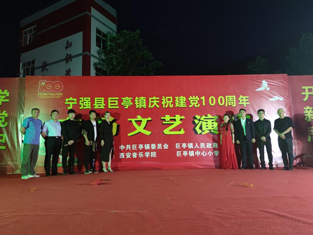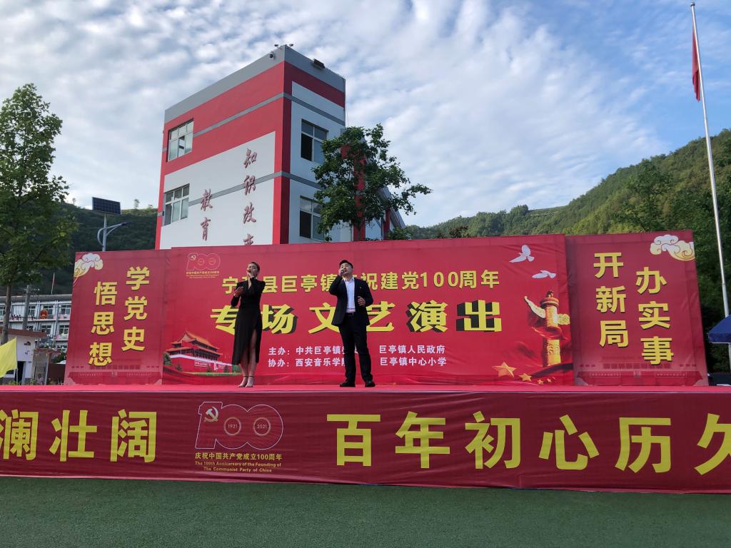 2021年6月29日,我校结对帮扶的宁强县巨亭镇举办主题为“学党史·悟思想·办实事·开新局”庆祝建党100周年文艺汇演活动,校工会副主席刘阳一行8人应邀参加演出。巨亭镇政府、镇医院、镇中心小学、以及各进驻镇党员,驻镇帮扶干部,各村党员群众代表1000余人参加。
