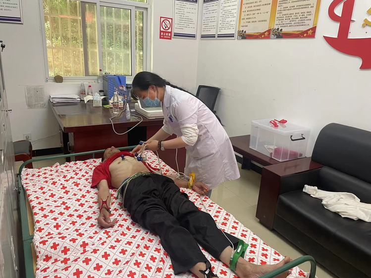 当日上午9时,村民们陆续来到义诊活动现场。医生专家、驻村工作队员、流溪沟村“两委”会干部提前将志愿服务团队随行携带的心电图机、血压计、血糖仪及健康宣教手册进行了合理布置、有序摆放。本次义诊免费为村民们开展了血压、血糖、心电图、内科等方面检查,解答了常见病、慢性病等相关知识,并根据检查结果对症开具处方,免费发放药品。医护人员还向村民宣讲疫情防控健康知识,发放了医疗急救包及保健手册等。
