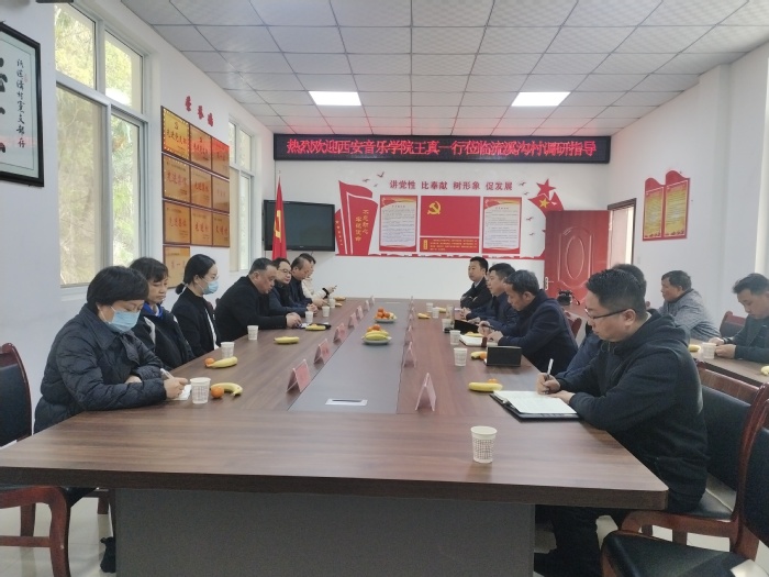 17日下午,王真一行首先抵达宁强县巨亭镇流溪沟村,与县、镇村干部进行了座谈。会上听取了巨亭镇镇长丁国成关于巩固拓展脱贫攻坚成果同乡村振兴有效衔接等相关工作报告。刘旭在交流发言中介绍了宁强县基本县情、产业发展、乡村建设和乡村治理等方面情况,感谢西安音乐学院多年来倾力、倾情、倾智开展帮扶工作,真情实意付出、真金白银投入、真抓实干攻坚,为流溪沟村巩固拓展脱贫攻坚成果和乡村振兴有效衔接、高质量推动乡村振兴等各项工作注入了强大动力和活力。并热切期待同西安音乐学院在加强人才交流、产业帮扶合作、专业人才培训、促进消费帮扶等方面深化交流与合作,推动解决宁强县乡村建设面临的难点堵点问题。王真首先对县、镇村各级部门在学校实施“两联一包”、“双百工程”各项帮扶工作期间给予的大力支持表示感谢。他表示,今年是全面贯彻落实党的二十大精神的开局之年,西安音乐学院将进一步增强政治担当,夯实帮扶责任,持续巩固拓展帮扶成果,全面推进乡村振兴工作,为助力宁强县经济社会高质量发展作出应有贡献。
