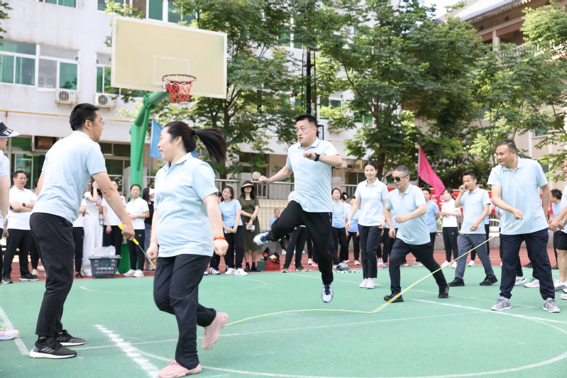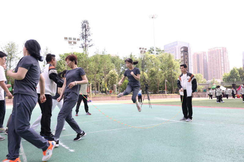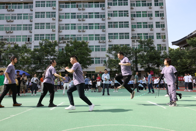 本次趣味运动会设置了“集体跳大绳”、“5×30米往返绑腿接力”、“拔河”等3个比赛项目。经过各二级分工会精心组织,全校15个分工会、42支队伍、303人参加。在各个赛区,参赛者摩拳擦掌,蓄势待发。在“集体跳大绳”项目,教职工们全情投入,表现踊跃。裁判长宣告比赛开始,选手们紧盯飞舞的大绳,排列有序紧随跳跃,失败了不气馁立刻投入比赛,现场欢呼声、掌声频频响起。