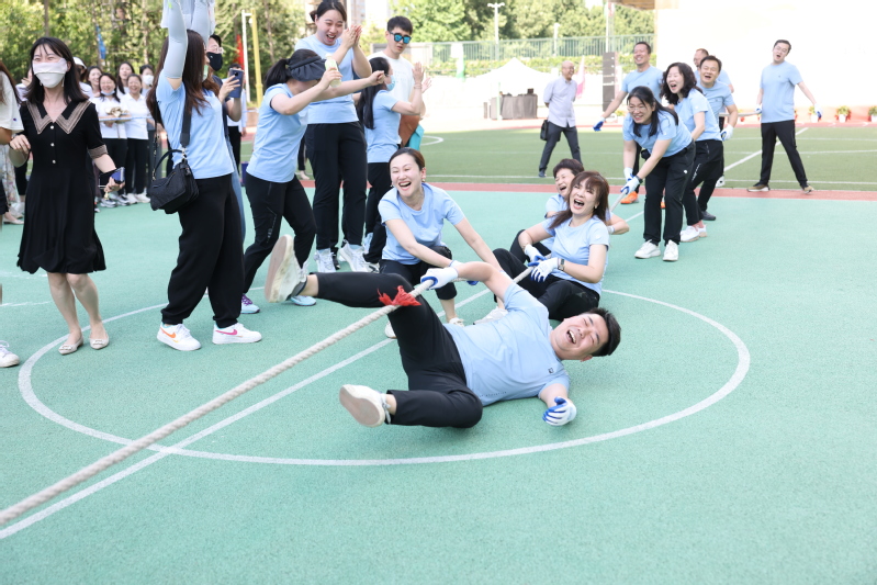“拔河”项目将本次运动会现场的气氛推到了最高点,比赛中选手们个个咬紧了牙关,使足力气,两边的拉拉队也不甘落后,加油声一浪更胜一浪。整场趣味运动会气氛既热烈又欢乐,展现了我校教职工积极向上、团结奋进的精神面貌。
