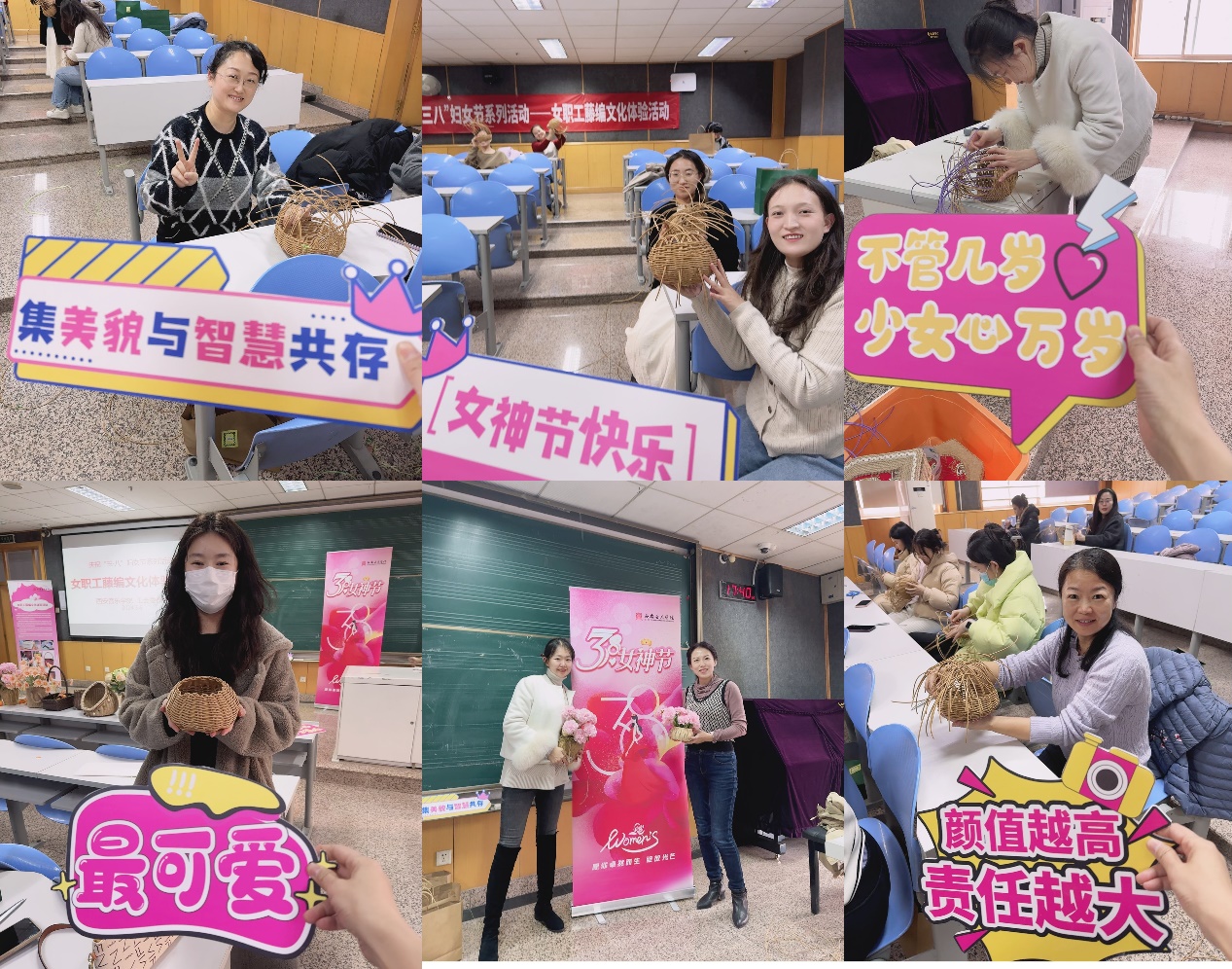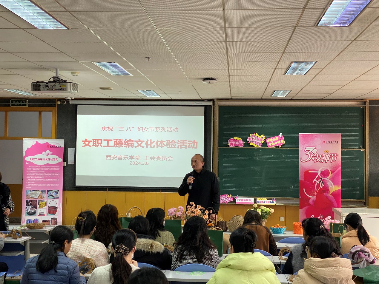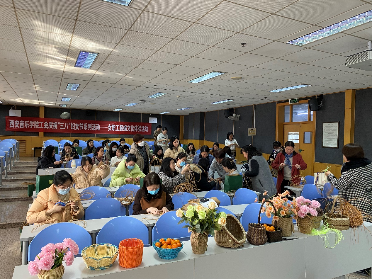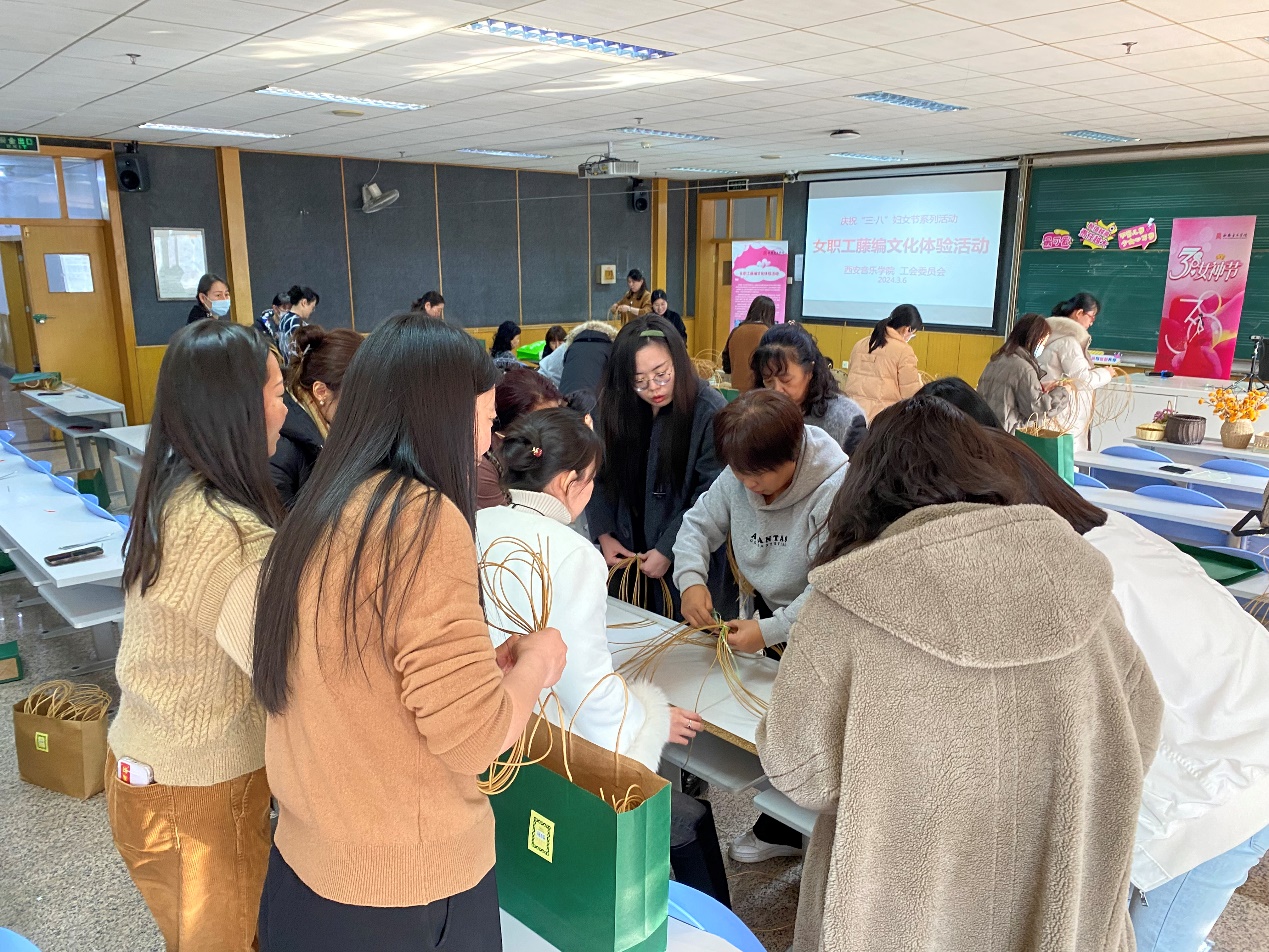 为庆祝第114个国际劳动妇女节,丰富教职工文化生活,3月6日下午,校工会举办庆“三·八”妇女节藤编文化体验活动,70余名女职工到场参加。