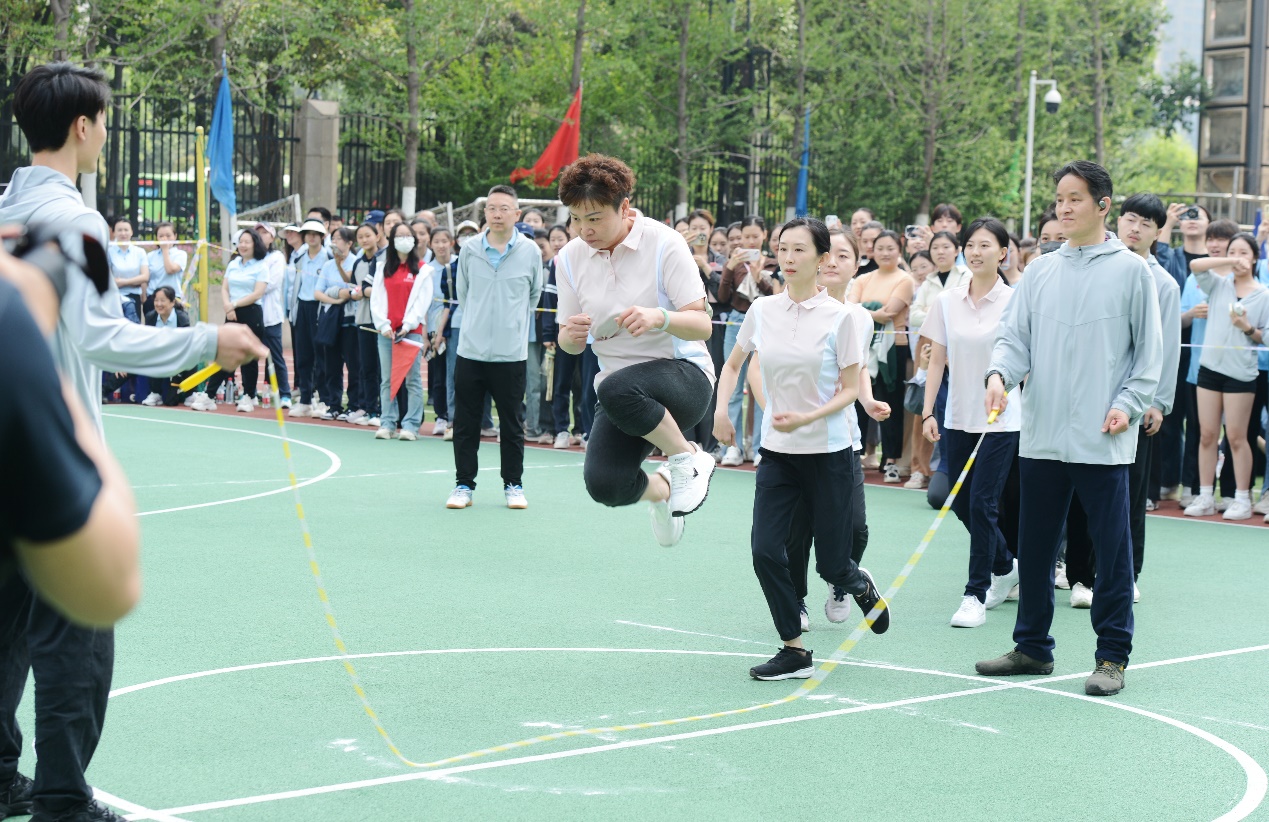 本届运动会教职工共有三分钟跳大绳,同心击鼓和拔河三项集体项目。比赛现场,运动员顽强拼搏、挥洒汗水,彰显出我校教职工昂扬面貌,观众激情呐喊、鼓劲助威,为比赛增添了无限的热情与活力。