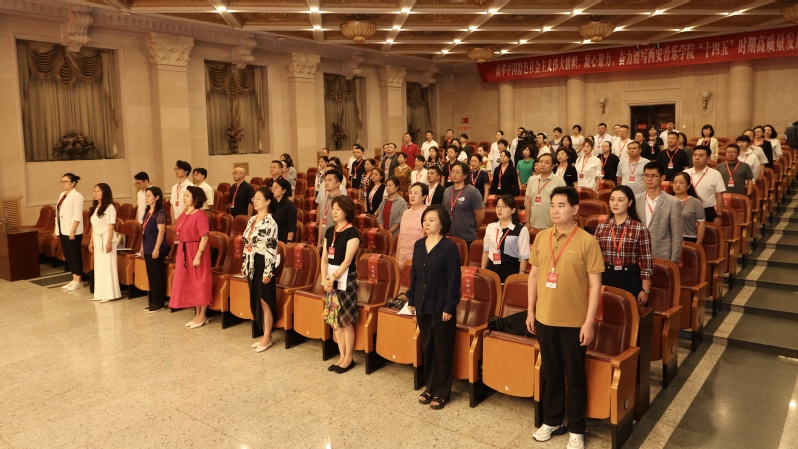 他号召,全面推进学校高质量发展,加快建成高水平、有特色,国内一流、国际知名音乐学院,使命光荣、责任重大。全体教职工要在学校党委的坚强领导下,以此次“双代会”召开为契机,对照学校“十四五”发展规划和年度工作要点,认真梳理上半年工作,重点围绕本科教育教学审核评估、消防安全隐患专项行动、毕业生就业、暑期安全稳定、党纪学习教育和群众身边腐败问题专项整治等重点任务做好统筹安排,不断提升办学治校水平和综合竞争力,以奋发姿态和优异成绩迎接我校建校75周年,庆祝新中国成立75周年。