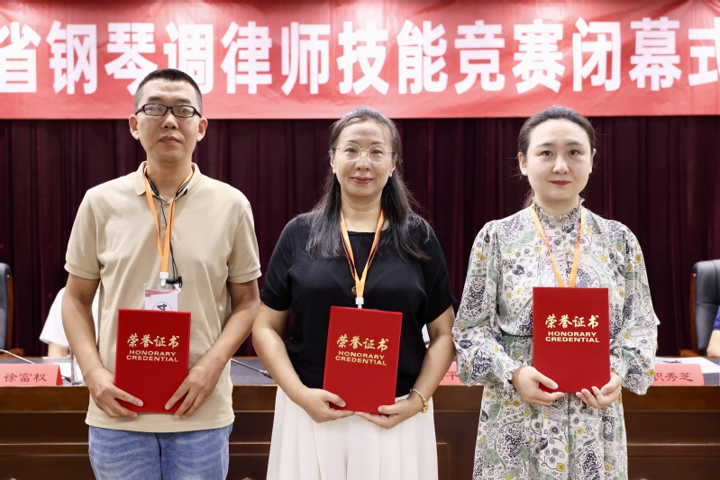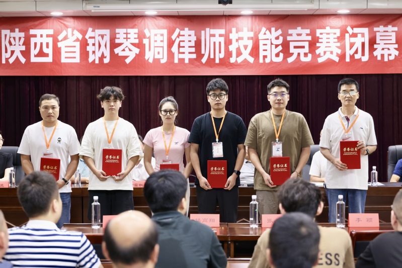 23日下午,竞赛闭幕式暨颁奖典礼隆重举办。陕西省教科文卫体工会主席徐富权致闭幕词。他高度肯定本次竞赛相关工作,感谢竞赛组委会、评审专家、参赛选手和工作人员的辛苦付出,热烈祝贺竞赛取得圆满成功。他指出,本次竞赛作为陕西省首次举办的省级钢琴调律师技能竞赛,是陕西省职业技能系列竞赛的新突破,是西北地区钢琴调律师行业的新突破,对陕西省钢琴调律师行业发展有里程碑意义。他赞扬参赛选手在竞赛中展现出的精湛专业技艺和饱满行业风貌,勉励参赛选手将比赛成绩和参赛经验转变为工作进取心,进一步提升行业活力和职业风采,以本次竞赛为契机,共同推动钢琴调律行业的繁荣与发展。陕西省教科文卫体工会将为钢琴调律师行业做好支持保障工作。