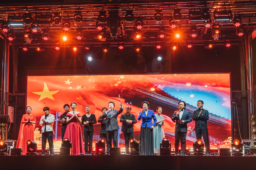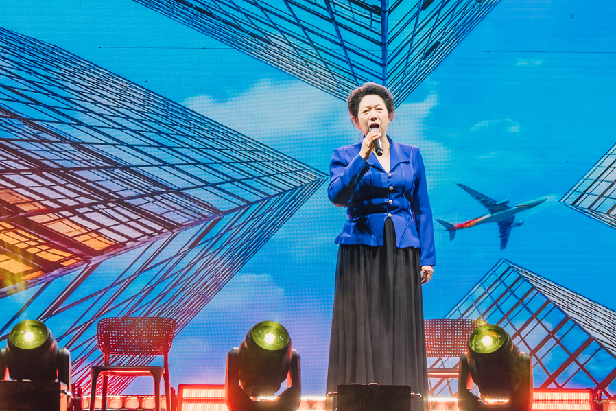 国家一级演员、文华表演奖及戏剧梅花奖得主安金玉献唱经典曲目《我爱你中国》。她以清亮高亢的嗓音与饱满的情感,娓娓道来对祖国的无限深情,点燃观众对美好未来的憧憬。