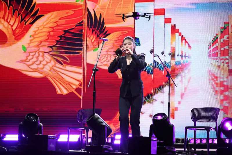 民乐系姚博文以唢呐模拟百鸟争鸣,循环换气技巧与嘹亮音色生动再现“凤凰翱翔、百鸟和鸣”的民间艺术意象,赢得阵阵喝彩。