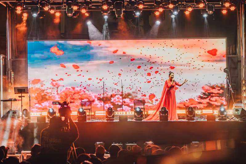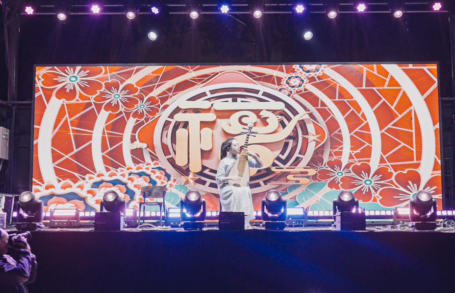 为提升演出效果,西安音乐学院特别启用校友无偿提供的音乐大篷车,配备7680mm×3040mm超清LED屏及13.5米×5.5米舞台。声光效果与广场夜景巧妙融合,传统民乐与现代电声在光影流转中交相辉映,展现艺术与科技融合的创新实践。