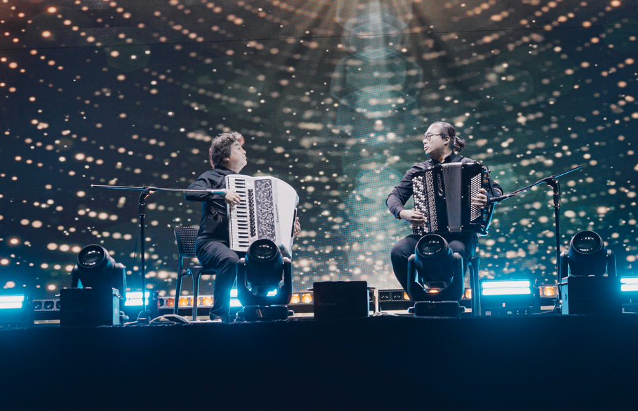 现代音乐学院谭艺民与钢琴系李聪联袂献艺。两位教师默契配合下,手风琴的悠扬与明快旋律交织,既呈现北方民歌的质朴风情,又以复调技法展现传统音乐的现代诠释,彰显艺术传承的温度。