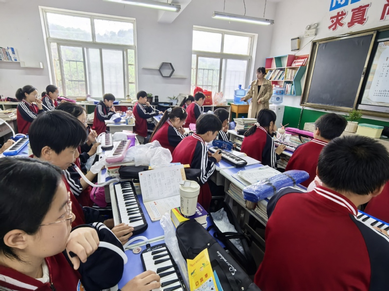 随后,我校师生在七年级教室同步开设了口风琴、竖笛、葫芦丝等器乐教学,以趣味化教学帮助学生快速掌握基础技巧。艺术思政方向研究生们带领着20名学生编排独具羌族特色的民族舞,与合唱社团学子一同在《如愿》歌声中感悟家国情怀。大会议室内,“艺术思政”重点研究基地主任张津波老师开展《行走的大思政课——艺术走边防》专题讲座,让现场学生内心深受触动,给大家上了一堂生动的爱国主义思政课。