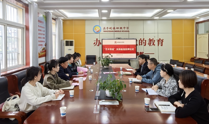 当日上午,我校在燕子砭镇初级中学举行艺术思政实践基地揭牌仪式,标志两校在思政教育与艺术教育融合领域开启新篇章。此次实践基地的设立是艺术元素融入大中小学思政课一体化建设的重要探索,为有效弥补乡村美育短板,让思政教育更生动鲜活。在随后召开的“大中小学思政课一体化建设”座谈会上,燕子砭镇初级中学介绍了学校的基本情况和亟待帮扶解决的问题,双方并就“线上艺术思政公益课堂”筹建工作展开深入交流,为后续常态化帮扶奠定扎实基础。