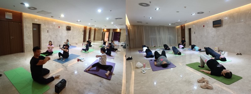 参加瑜伽体验活动的老师们更是热情高涨,在一个月活动中集中练习了瑜伽、普拉提等运动,并约定以后每周同一时间同一地点继续运动,教练韩老师也将义务为各位老师提供持续指导。