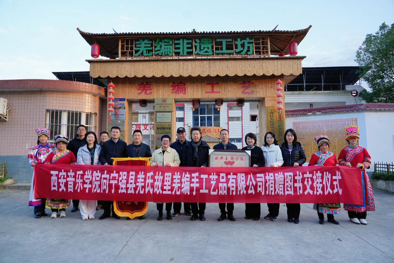 在宁强羌编园,学校与宁强羌氏故里羌编手工艺品有限公司举行了图书捐赠仪式。此次学校带来了涵盖艺术、文化等领域的精选图书,为当地羌编文化传承与产业发展注入了新动力。在交流中,学校一行参观了羌编非遗工坊,与非遗传承人及羌编匠人深入交流,围绕文化共建、技艺创新、品牌推广等话题展开探讨,共同探索非遗活态传承与校地合作的新路径。