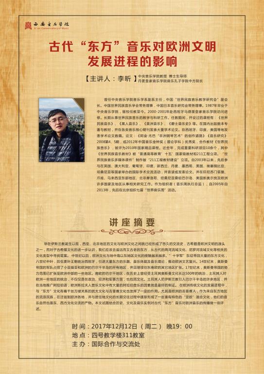 讲座题目:古代“东方”音乐对欧洲文明发展进程的影响