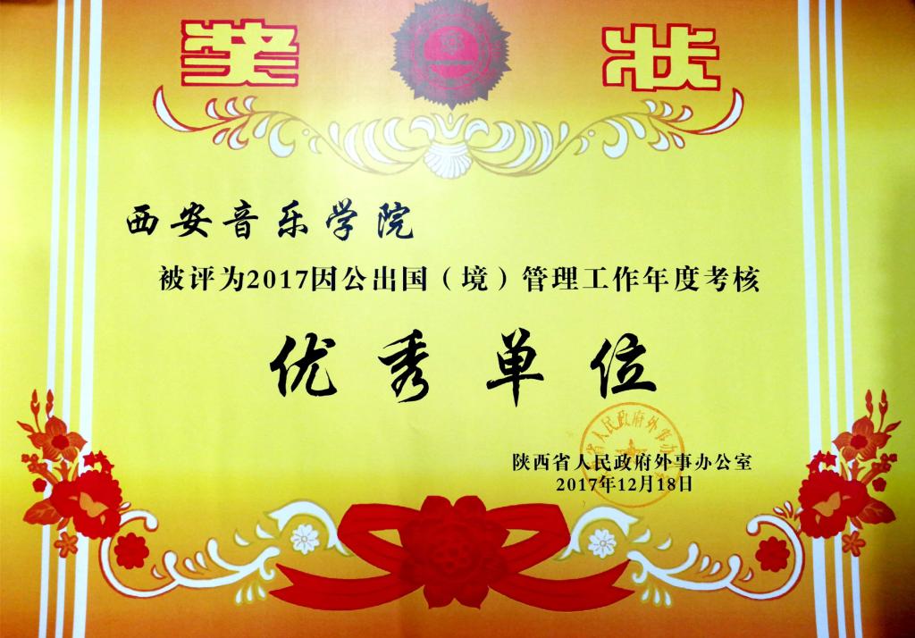 2017年12月22日,由陕西省人民政府外事办公室开展的年度总结考核中,我校国际合作与交流处荣获“2017因公出国(境)管理工作年度考核优秀单位”,并获得大会表彰。