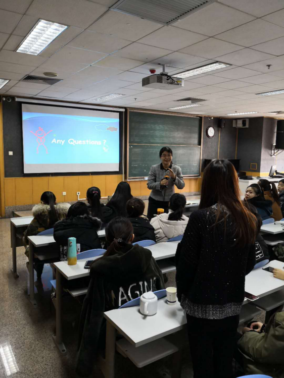 宣讲会现场,吴琴总监从项目背景、发展历程、平台优势、申请流程等方面对121项目进行了介绍,期间通过一个个成功的留学案例,详尽而又细致地介绍了同学们在美方校园学习、生活方面等情况,并就一些学生所关心的问题进行了互动解答。