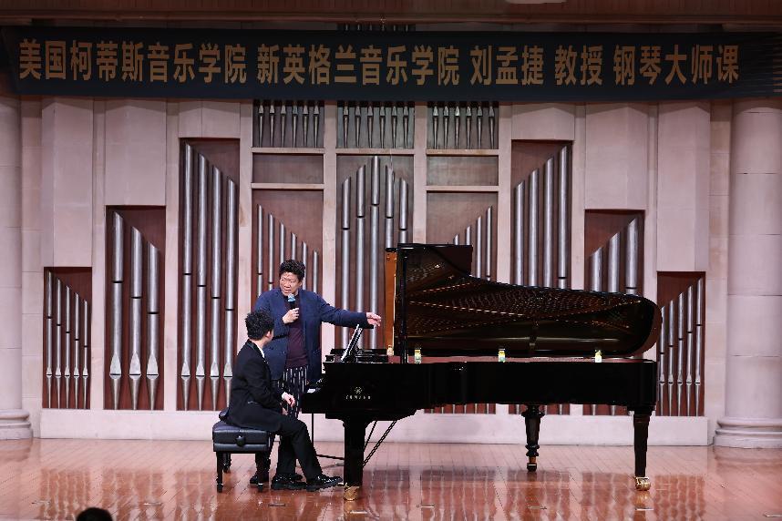 刘孟捷在学术厅分别举办了9场大师课,来自附中、本科、研究生的9名学生接受现场指导,钢琴系全体教师及我校300余人观摩此次大师课。刘孟捷通过指导我校学生们的演奏曲目,分享他对音乐作品的理解,以及传授他在音乐领域的专业知识和经验,让学生们学到了更多先进实践技巧和艺术理念、开拓了艺术视野。
