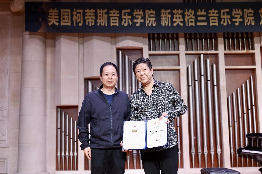 9月27日下午,刘孟捷在学术厅进行本次讲学的最后一场学术讲座《专业课以外的相关课程,对钢琴演奏起到了什么重要作用》。讲座中,刘孟捷分享了他的教学理念和学术见解,与师生们进行互动和讨论,为师生们提供了一个深入了解钢琴领域前沿研究方向和热点问题的机会。以此次学术交流活动为契机,刘孟捷正式受聘成为我校客座教授,讲座结束后,副院长仲廷虎为其颁发聘书并合影留念。