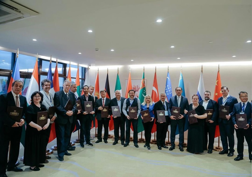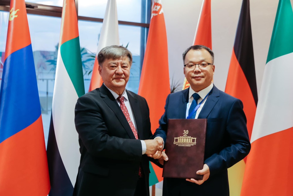 5月25日,与会全体嘉宾同吉尔吉斯斯坦文化、信息、体育和青年政策部部长正式会晤,包括我校在内的20所音乐类院校共同签署高等音乐院校合作备忘录。