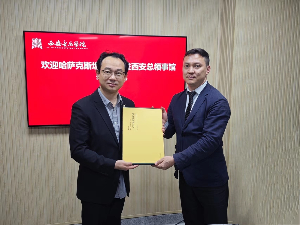 6月6日上午,我校副院长侯颉与哈萨克斯坦共和国驻西安总领事馆参赞伊萨耶夫·阿拜,领事萨金德克夫·叶达等一行,在艺术中心举行了座谈交流