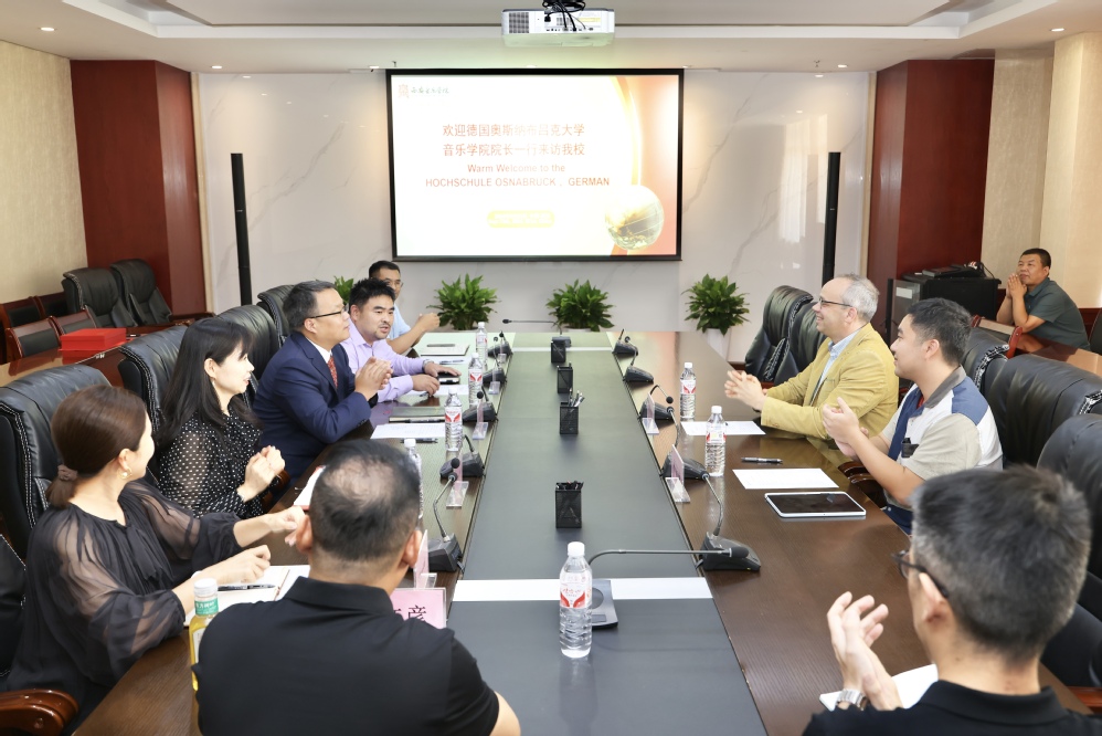 豪科·韦瑟尔院长感谢我校的热情接待,详细介绍了德国奥斯纳布吕克大学音乐学院的历史、特色和基本情况。他表示,希望通过此次来访,能够进一步加深双方的了解和友谊,与我校在联合培养、师生交换项目等领域展开合作。