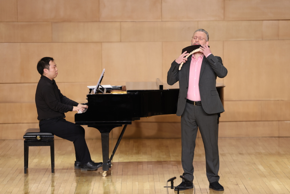 为进一步搭建排箫专业领域学术交流和成果共享平台,提升排箫专业学者实践及教学能力,加强与国外排箫艺术交流,12月8日,罗马尼亚著名排箫演奏家拉卢卡·帕图丽努(Raluca Patuleanu)、摩尔多瓦著名排箫演奏家斯坦芬·内古拉(Stefan Negura)应邀到访我校并成功举办排箫国际交流音乐会。