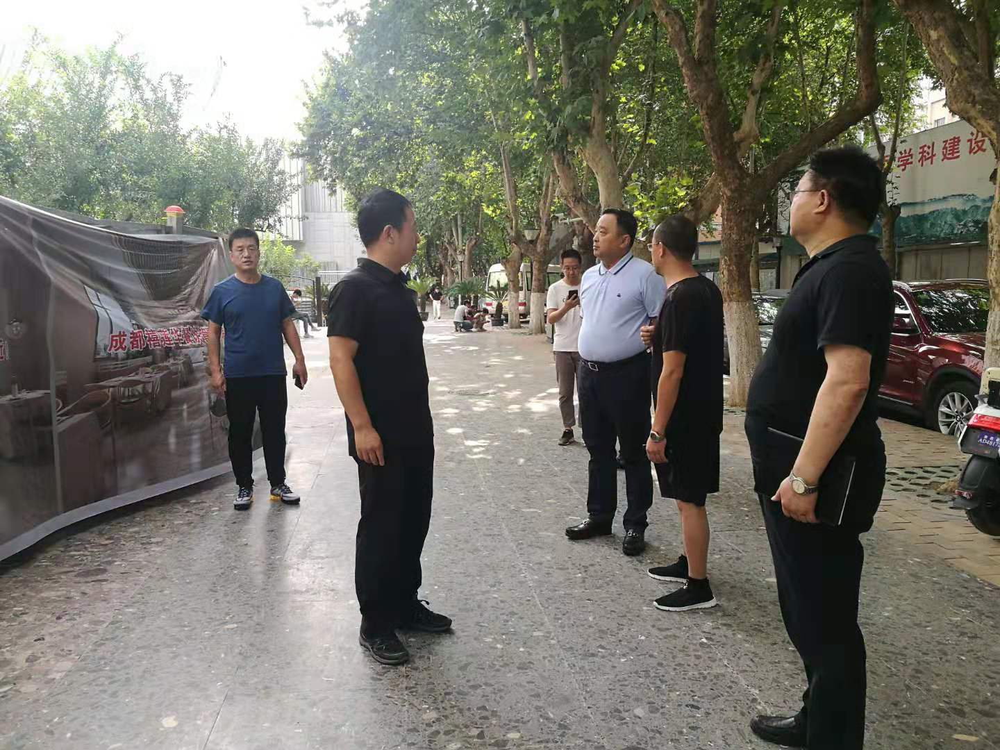 8月30日,开学第一天上班,王真院长、仲廷虎副院长带领后勤处处长及相关科室负责人,对家属区及教学区整体环境卫生进行检查。