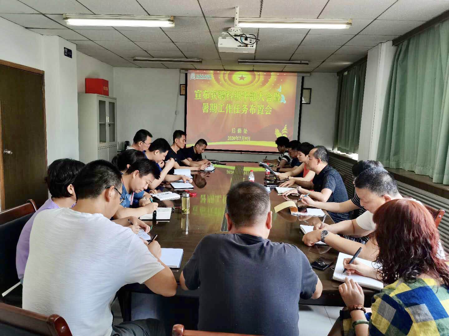 2020年7月9日下午,后勤处组织召开专题会议,宣布了获聘科级干部人选,并对暑期重点工作任务进行了动员部署,后勤处全体人员参加了会议。
