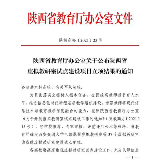 一、我校获批陕西省首批虚拟教研室试点建设立项