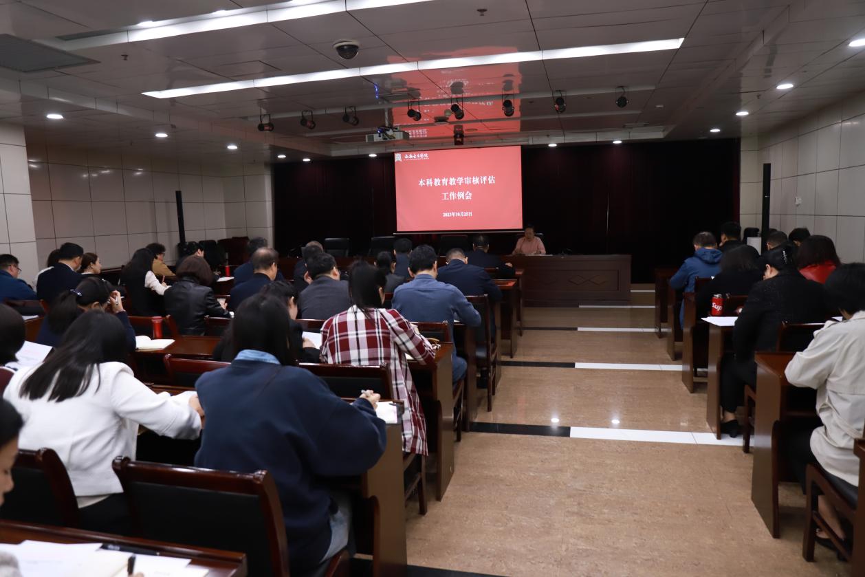 10月25日上午,学校召开本科教育教学审核评估工作例会。评估工作办公室主任、教务处处长王高飞主持会议,院长王真、副院长强陆平、评估专项工作组组长单位负责人、评估专项工作组成员单位负责人、各二级教学单位院长、书记、分管教学负责人、教学秘书及评估工作办公室全体人员参加会议。