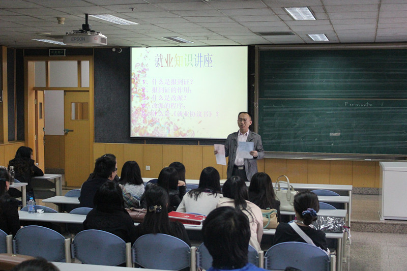 3月27日,我院研究生部与就业指导中心联合在五号教学楼415教室为2013届毕业研究生以及2011级在校研究生举行了研究生就业指导讲座,这是继2012年10月举办的高校毕业生的求职技巧与方法讲座之后的又一次系统的就业培训。讲座由就业指导中心王权老师主讲。