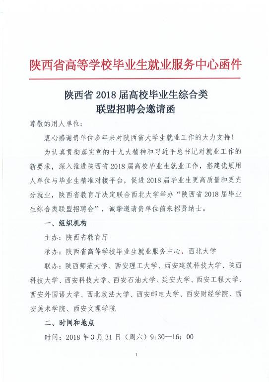 陕西省2018届高校毕业生综合类联盟招聘会邀请函