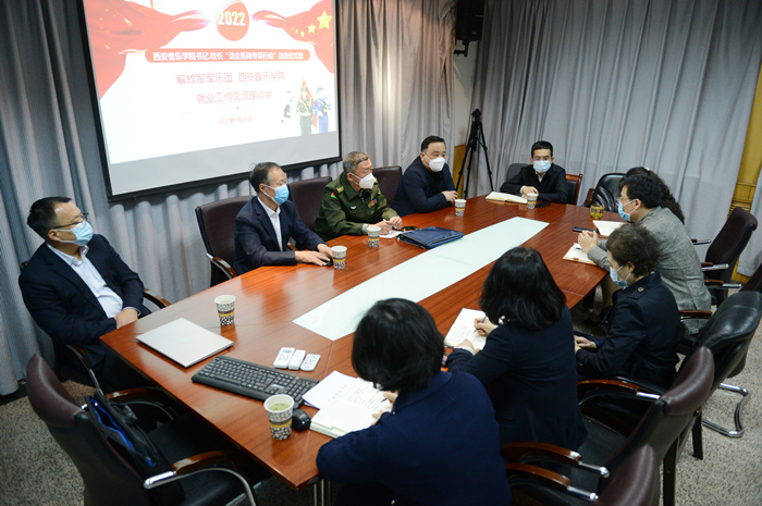 2022年4月28日上午,西安音乐学院书记、校长“访企拓岗专项行动”启动仪式暨2022年中国人民解放军军乐团与西安音乐学院就业工作交流座谈会举行。此次座谈会旨在落实教育部2022年高校书记、校长访企拓岗专项行动精神要求,与用人单位深度交流,促进我校2022届毕业生更充分更高质量就业。校党委书记张立杰、院长王真、党委副书记王刚出席会议,学工部、招就处、管弦系等有关单位负责人参加活动。