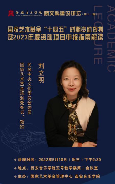 5月18日下午,我校召开2023年度国家艺术基金资助项目申报培训会。本次讲座由我校和哈尔滨音乐学院、中央音乐学院、上海音乐学院、星海音乐学院、浙江音乐学院六所院校联合举办,采取“线上线下、六地联动”的方式举行。讲座特邀国家艺术基金规划处处长刘立明做辅导培训,校党委副书记李宝杰主持。