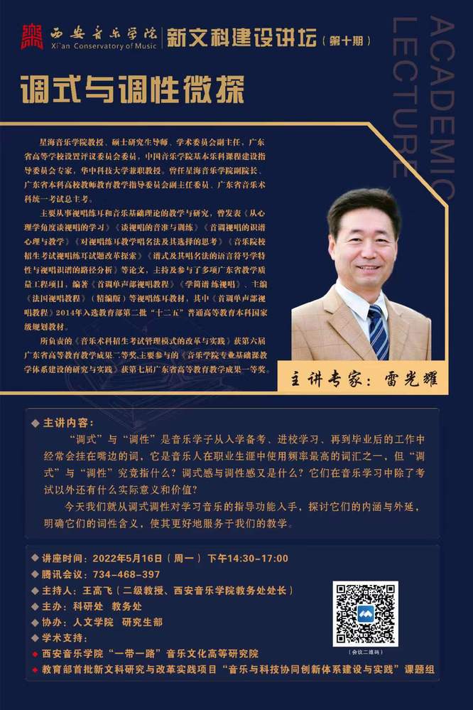 西安音乐学院“新文科建设讲坛”第十期——主讲专家雷光耀教授